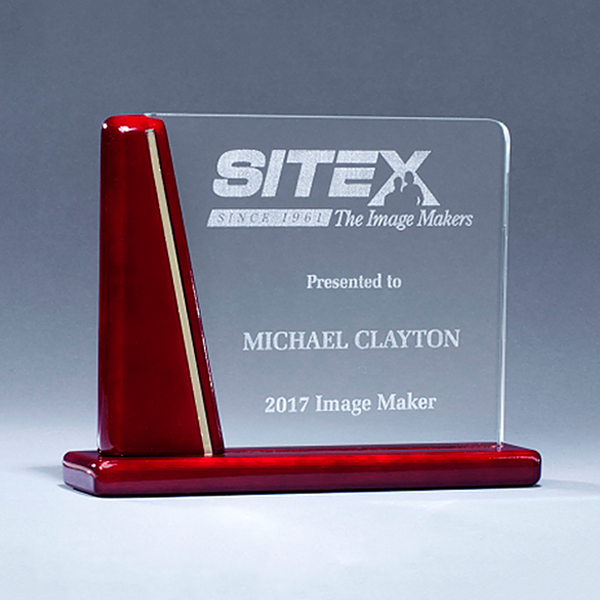 / Glass Award with Rosewood Piano-Finish Base