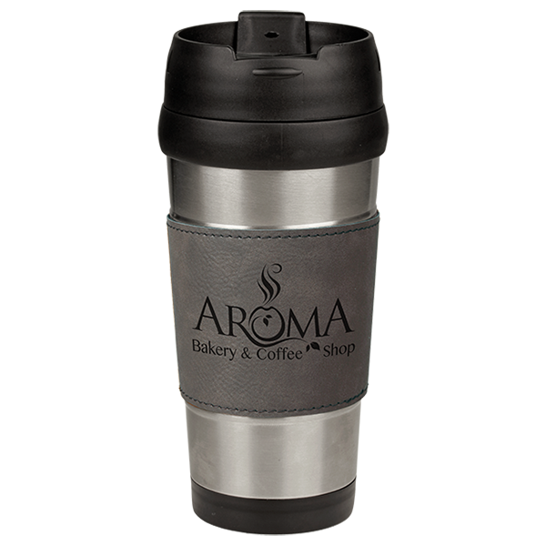 16 oz. Gray Laserable Leatherette Stainless Steel Travel Mug